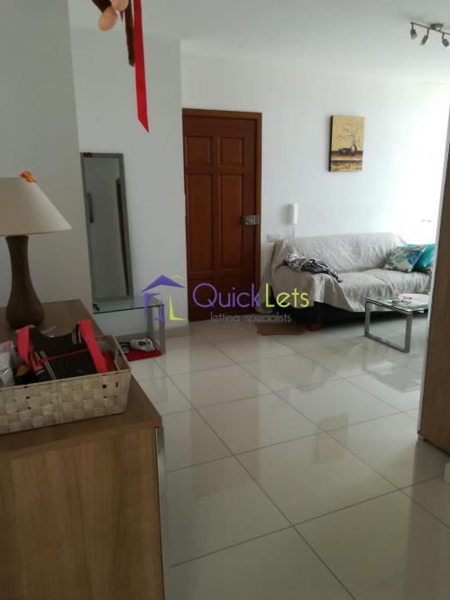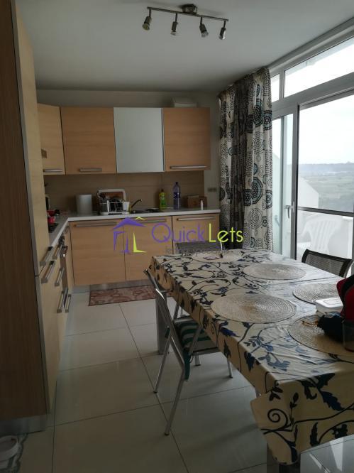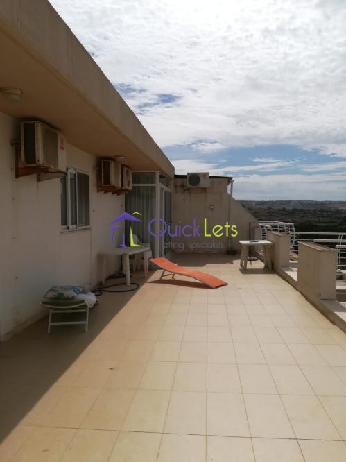 BUGIBBA - Cosy two bedroom Penthouse in Bugibba. Layout comprises an open plan kitchen/dining/living area, leading to a front big terrace with BBQ area perfect for entertaining. Main bedroom is with double bed and en suit bathroom, second bedroom with one single bed. Have a guest bathroom. Full AC. Close to bus station and all your daily amenities.