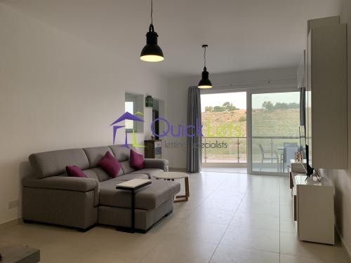 BAHAR IC-CAGHAQ - Ultra modern, bright and highly furnished apartment found in a great part of Bahar ic Cahaq. Property has been finished to a high standard and comes fully furnished and fully equipped. Layout comprises of a spacious open plan living, kitchen and dining area leading out onto a large front balcony which overlooks a tranquil green area and enjoys views further up into the valley and also has distant sea views.