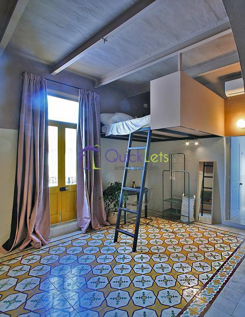 BORMLA | Beautifully converted Studio apartment with a Juliet balcony with views of the valley and sea views. The studio, which is fully furnished, comprises a mezzanin sleeping area, a fully equipped Bespoke designer kitchen, a dressing area with a desk, a built-in sofa with a pull out bed, and a private bathroom with walk-in shower.