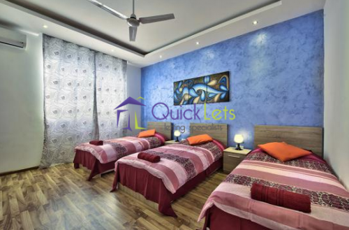 With the over all high standard of finish throughout in each apartment the clever use of lighting was particularly eye catching with a square soffit repeating the shape in the bedrooms. This apartment has 3 bedrooms and two bathrooms. The bedrooms that are located on the back part of the apartment make them ideal for having a good night rest from the busy promenade during the day. Both bathrooms are compact in design but make for an optimum use of space, both follow a similar theme. The only difference between the two is that the ensuite has a bath tub while the family bathroom has a shower cubicle. As for the bedrooms, it has a double bedroom with ensuite, a twin bedroom (2-single beds), and a triple bedroom (3-single beds).