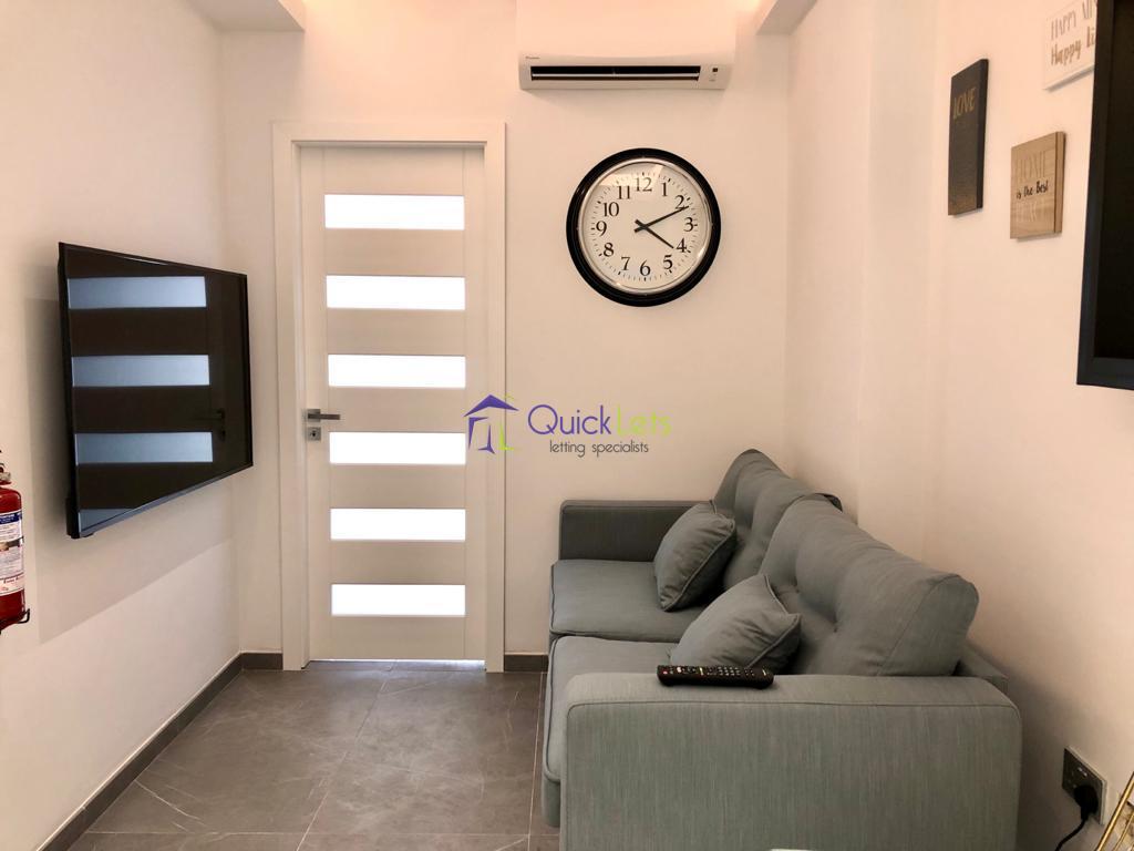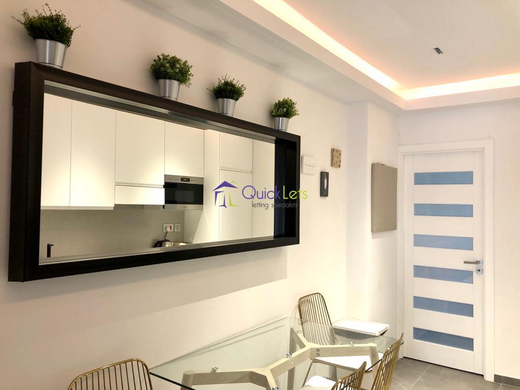 SLIEMA- Brand new two bedroom apartment in Sliema. The apartment consists of two double bedrooms, two bathrooms, kitchen, living, dining, balcony, The apartment is fully furnished and airconditioned, with washing machine, tumble dryer, LCD TV and dishwasher.