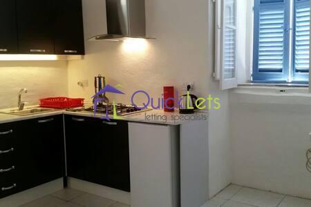 FLORIANA - small corner, furnished Townhouse in a quiet residential street with views of the Grand Harbour from one open balcony and a closed wooden balcony. On the ground floor, one finds a fully equipped kitchen/dining/living room and a spacious and bright double bedroom and bathroom can be found on the first floor.