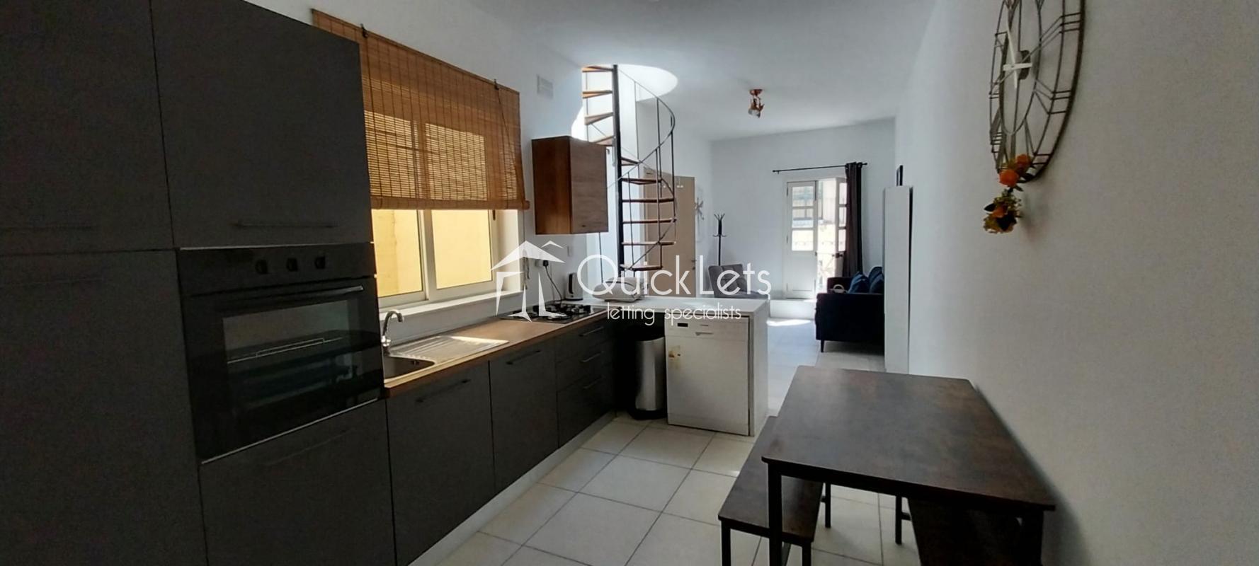 On the first floor you will find a nice open plan living space with a dining area and fully equipped kitchen, as well as the guest bathroom, and a small town view balcony facing the street.