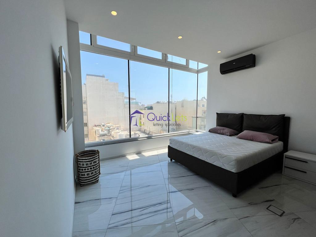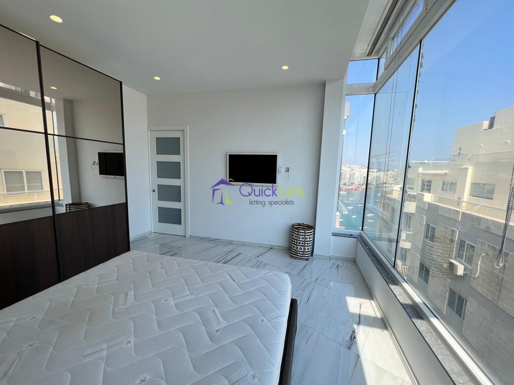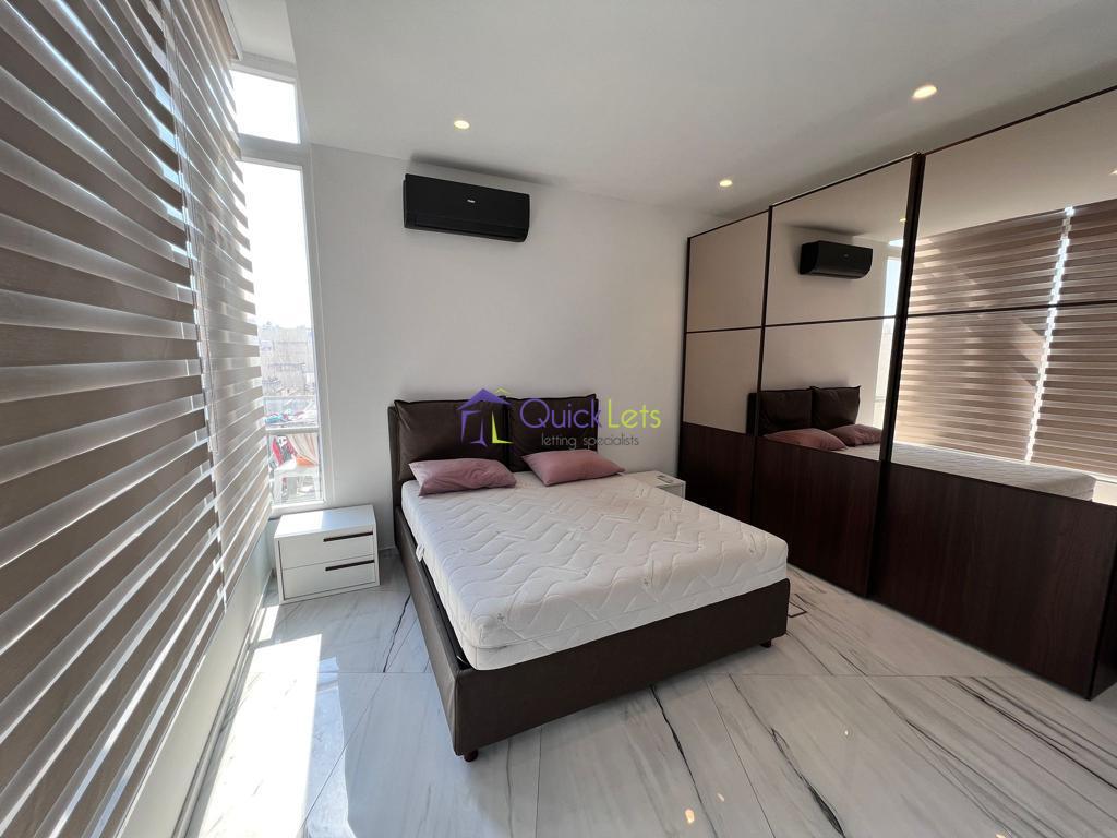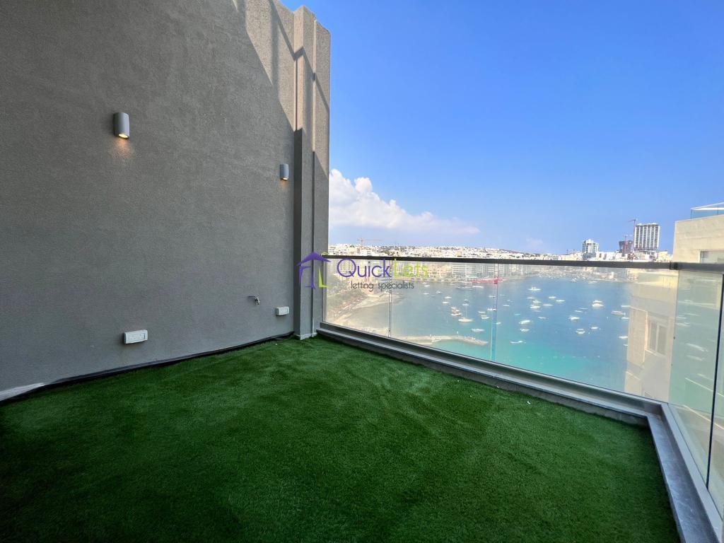 SLIEMA - Brand new SEAFRONT Corner Apartment, located on the strand. Comprising an open plan kitchen/Living/Dining area, bathroom, one-bedroom, and good sized balcony with outstanding sea and Valletta views.