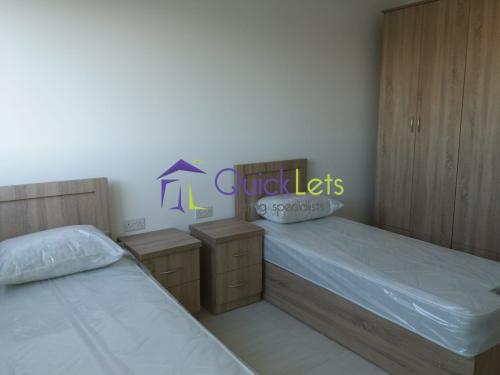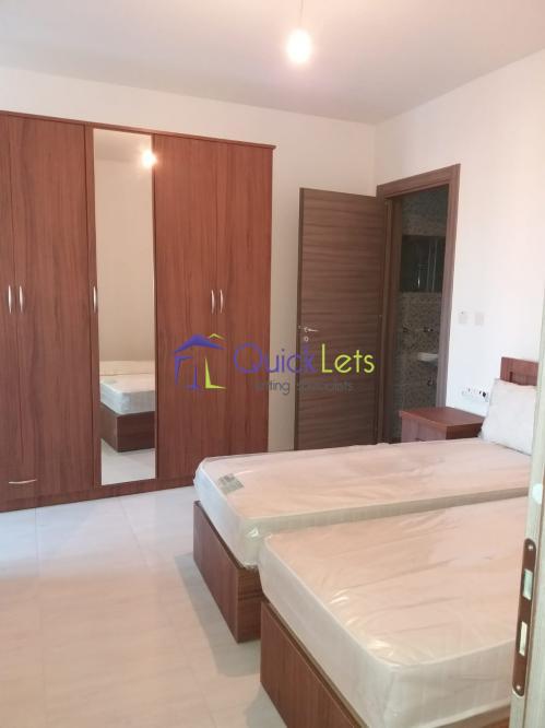 BIRZEBBUGA - A first-floor apartment served with a lift. The layout consists of a bright and airy open-plan kitchen/living/dining area with the main bathroom, leading to the main bedroom with two single beds, an office area, and an en-suite. Further, we have a second bedroom that has two single beds, and the third one has one single bed. The apartment has a large balcony and comes fully air-conditioned.