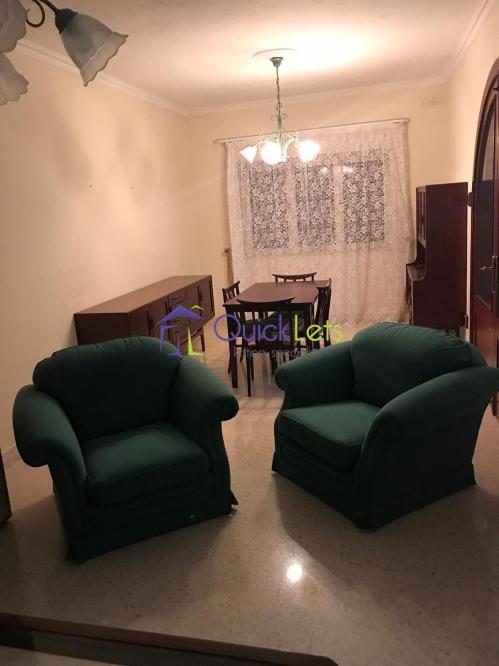 SWIEQI - Three-bedroom maisonette situated in the center of Swieqi, close to all amenities. Consisting of Kitchen area, Living/Dining area, three bedrooms (main with ensuite), another bathroom, and back yard. An interconnecting three-car garage which is convertible for optional extra accommodation is available at €400 / month. Pet friendly.
