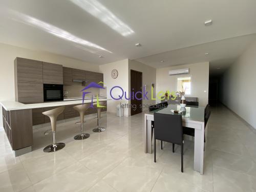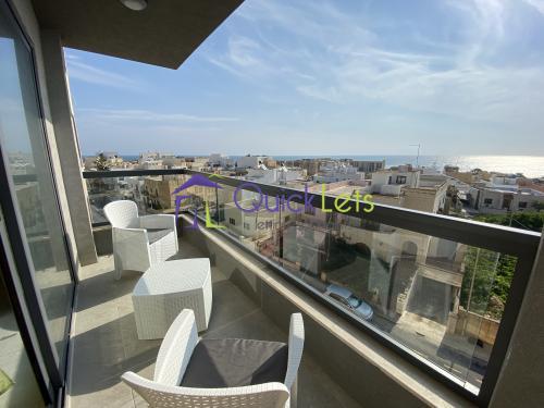 MARSASKALA - Beautiful three-double bedrooms and three bathrooms (one of them with bathtub). The apartment is fully equipped, with A/C and TV in each room. The kitchen/dining area opens into a terrace with amazing views, a back balcony, the block is served with a lift.