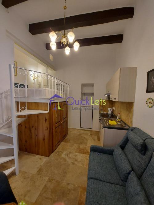 VALLETTA- Fully finished and furnished maisonette close to all amenities. Layout in the form of a kitchen/living, loft bedroom, bathroom and balcony enoying views of Fort St Angelo. A must see!