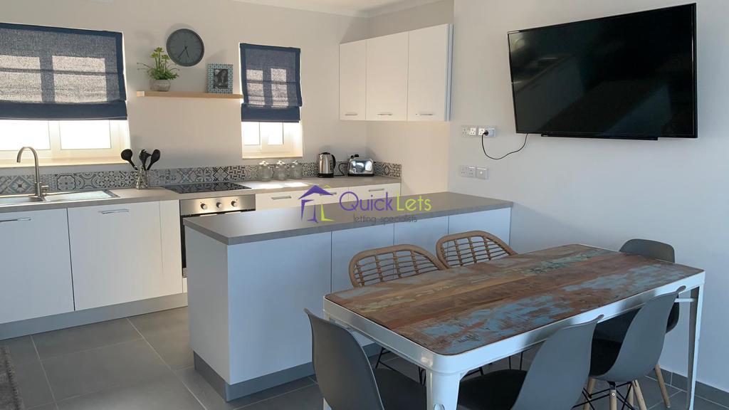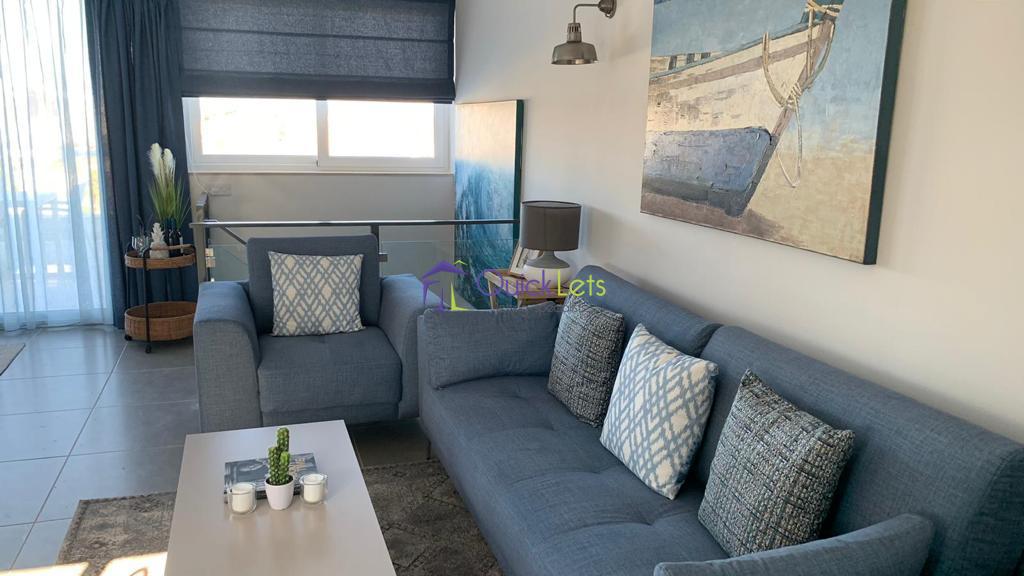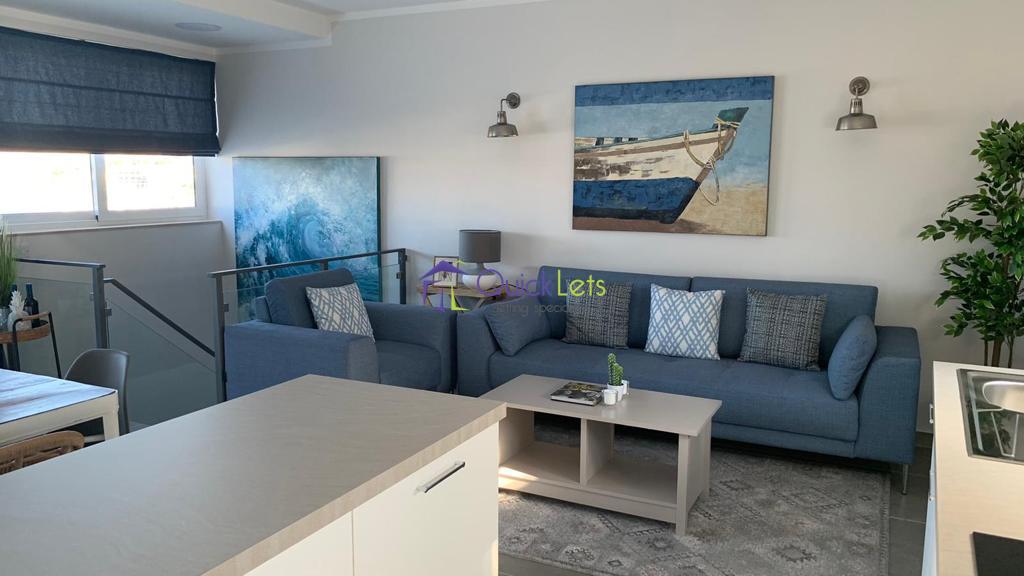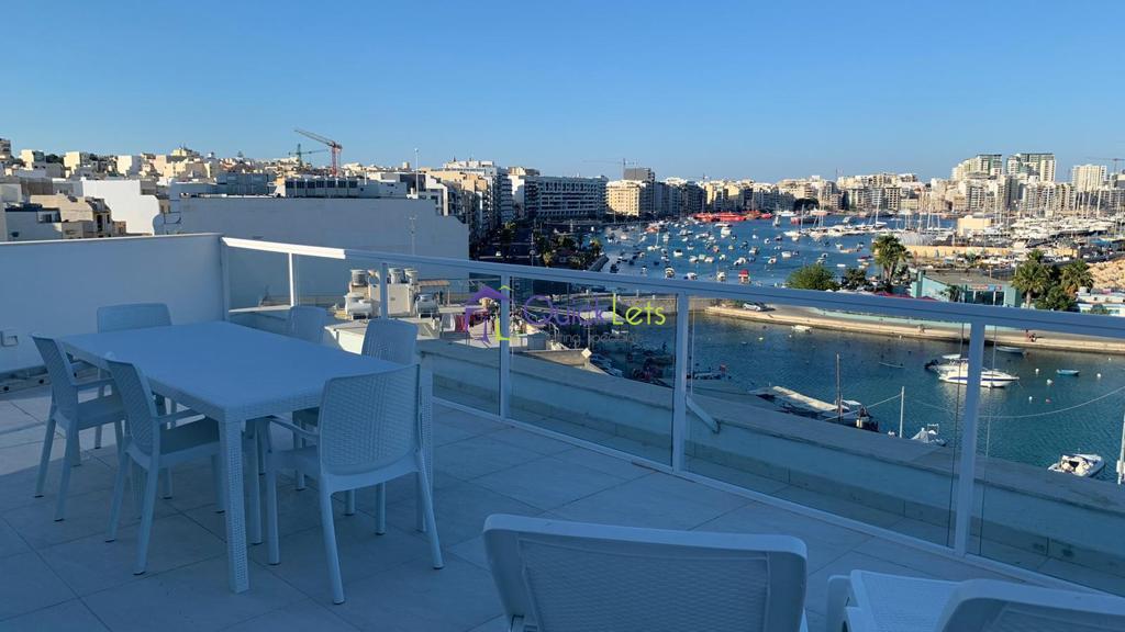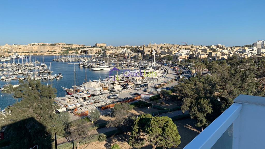 GZIRA- Three bedroom penthosue in Gzira. The penthouse comprises of three bedrooms, four bahtrooms, kitchen, living, dining areas and a terrace with sea view. The penthouse is fully furnished and airconditioned, with washing machine, tumble dryer, dishwasher, wine shiller and LCD TV.