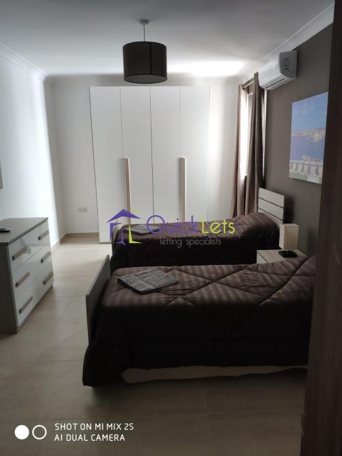 SWIEQI - Large, modern, bright four-bedroom Penthouse located close to all amenities such as supermarkets, restaurants bus stops, etc. Finished to high standards, entrance to a very big open plan kitchen/living/dining, balcony, fully equipped with air-conditioning, dishwasher & much more, four bedrooms air-conditioned, three double, one single, main complete with an ensuite, a walk-in wardrobe and a large back balcony.
