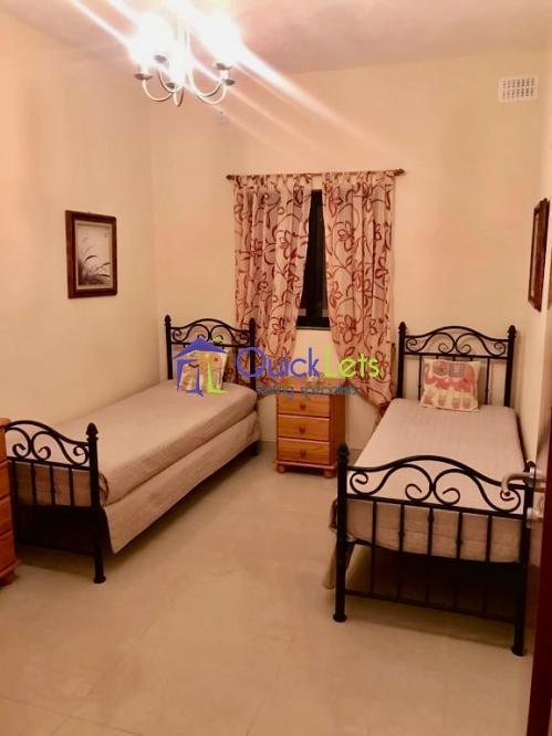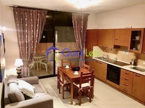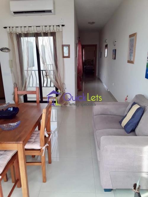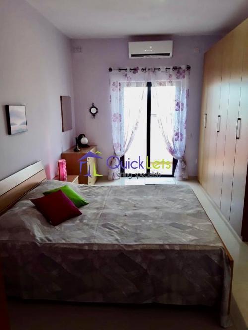 MOSTA - Two bedroom penthouse comprises an open plan kitchen, dining, living area leading onto a terrace with Mdina view, one main double bedroom with en-suite and leading onto another large terrace, one twin bedroom, and a guest bathroom with bathtub. The property is fully furnished, equipped and air-conditioned.