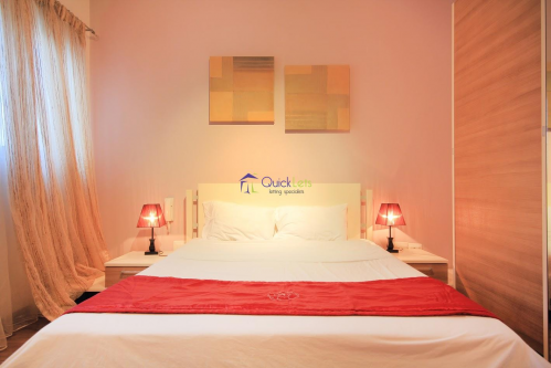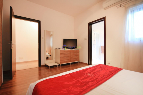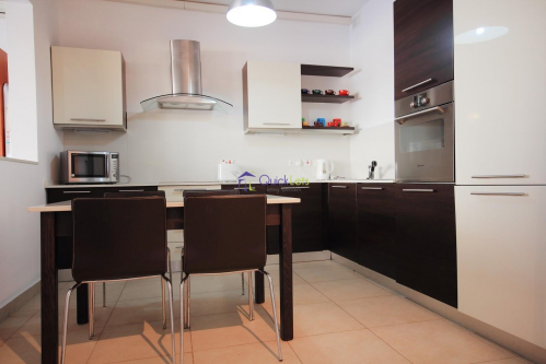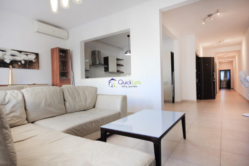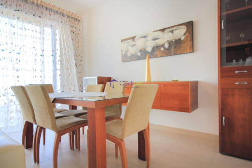 A modern and luxurious apartment, which includes a well-equipped kitchen leading to the living area. The living room has distant sea views from the large balcony.All bedrooms include parquet flooring.