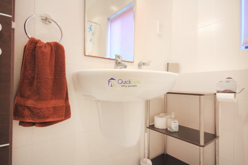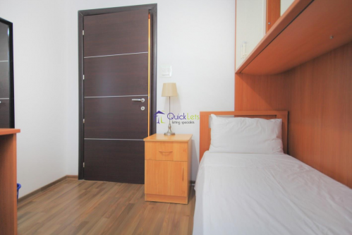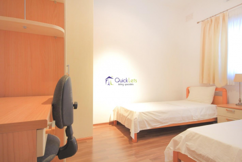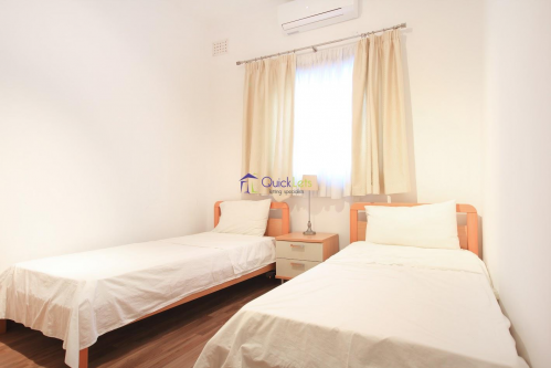 The apartment includes air-conditioning in the two larger bedrooms and kitchen area, and has two bathrooms.