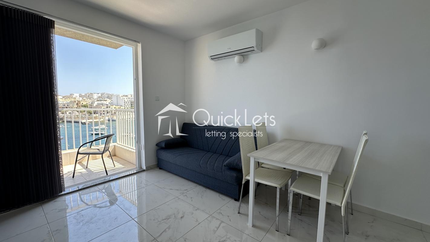 MARSASKALA - A first-floor one-bedroom apartment situated at the seafront of Zonqor area. The block is served with the lift. The layout consists of a combined kitchen/dining/sitting area with a good-sized front balcony and unobstructed sea view, the bedroom has a double bed, wardrobe and two bedside tables, a side balcony, a bathroom with a shower, toilet and sink. This property comes fully furnished and fully air-conditioned. This apartment is equipped with a Smart TV, washing machine/tumble dryer, fridge/freezer, microwave, hob, oven, hood, and dishwasher.