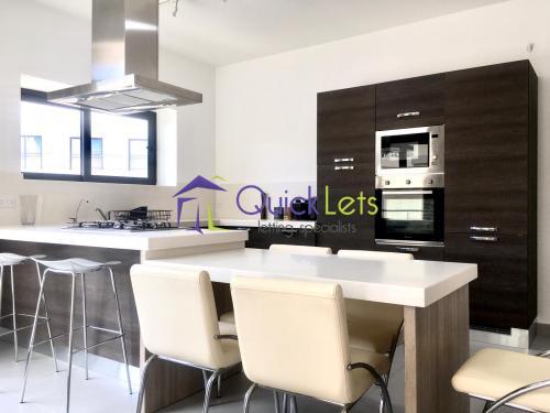 ST JULIANS - Located at Pender Gardens, this fifth-floor duplex apartment features, on the lower floor the open plan kitchen-living-dining area, fully equipped with air-conditioning and dishwasher, leading onto a spacious terrace and a guest toilet.