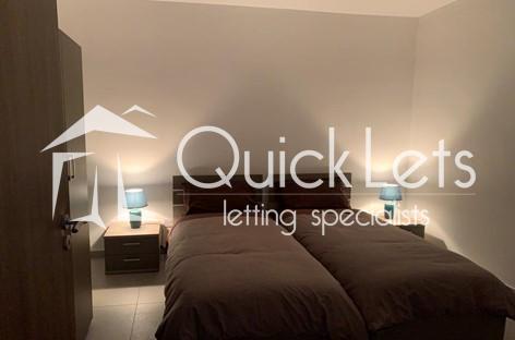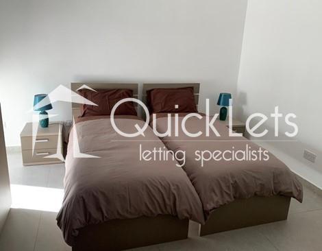 ST JULIAN'S - This centrally located two-bedroom apartment offers comfort and convenience. It features a main bedroom with an ensuite shower, a spare bedroom with two single beds, and a large main bathroom with a spacious shower. The open-plan kitchen, living, and dining area leads to one front balcony and two back balconies. The apartment is fully equipped with a TV, air conditioning in all rooms, including both bedrooms, and essential appliances such as a washing machine. Its prime location is close to bus stops and all amenities, making it an ideal home.