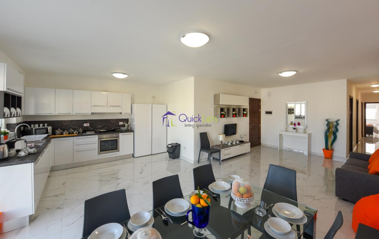 SWIEQI - This luxurious penthouse in Swieqi features one spacious bedroom, a dedicated study room, and a modern bathroom. It boasts both front and back terraces that provide stunning views of the surrounding area. Additionally, the penthouse includes a dedicated games room for entertainment and relaxation. For convenience and security, the property comes with six garages within the same block, ensuring ample parking space for residents.