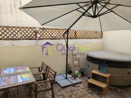 The property comprises of three bedrooms, two double and one single, a large open plan living/kitchen/dining, two bathrooms, two yards, one of then with a Jacuzzi.