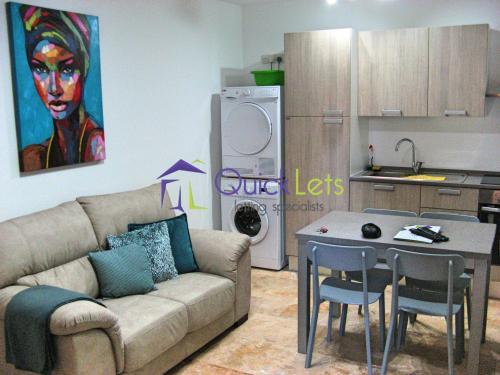 Newly finished and well appointed ground floor maisonette in a discreet and quiet location. Entrance into the kitchen / living room, leading to a good sized double bedroom with ensuite shower room. Property is equipped with washing machine and tumble dryer, modern lighting, airconditioning, electric cooker and two smart TVs with internet included.