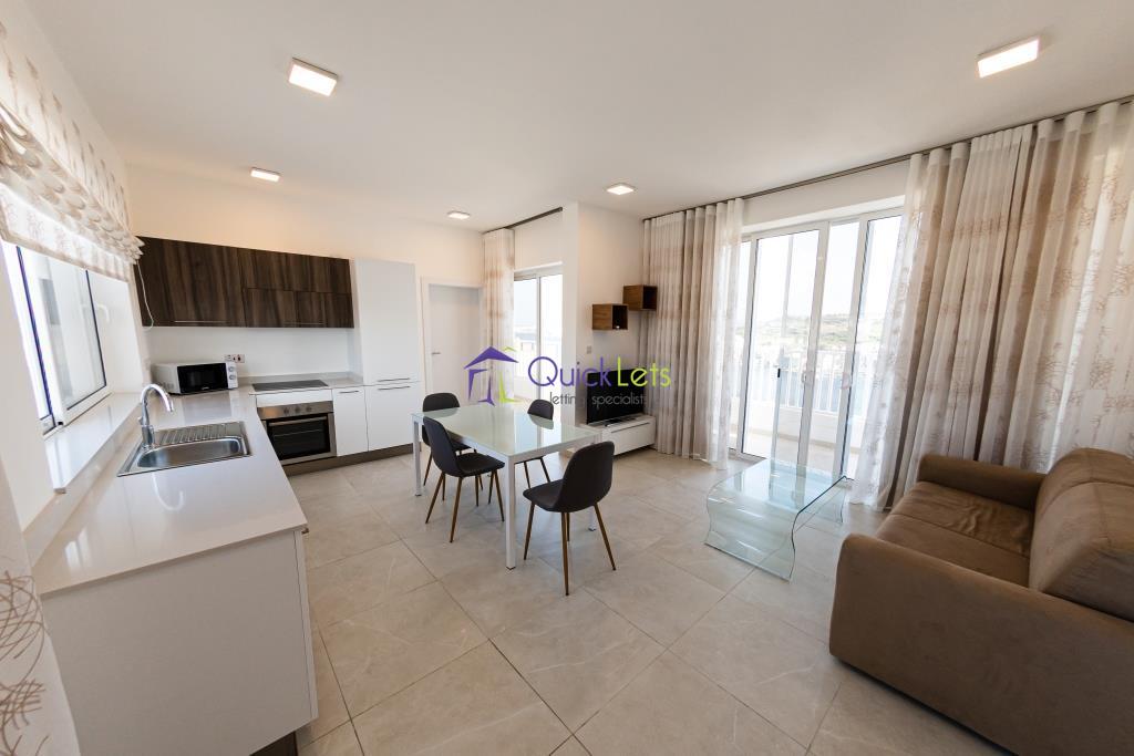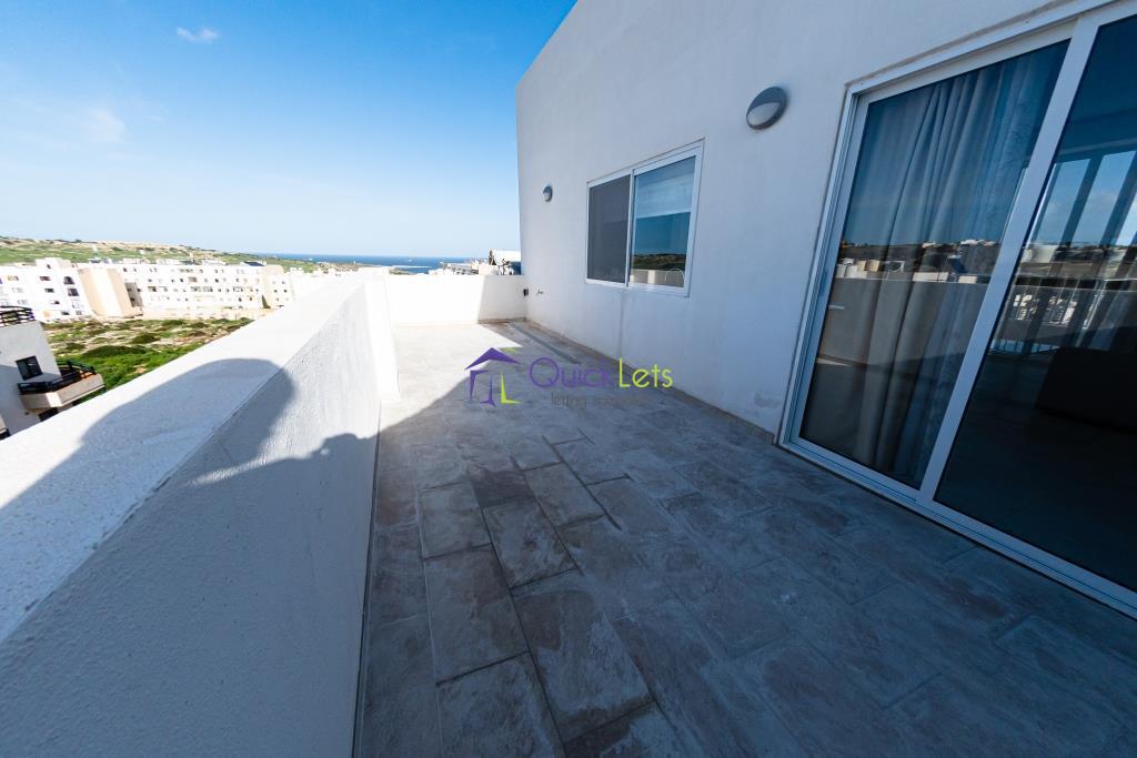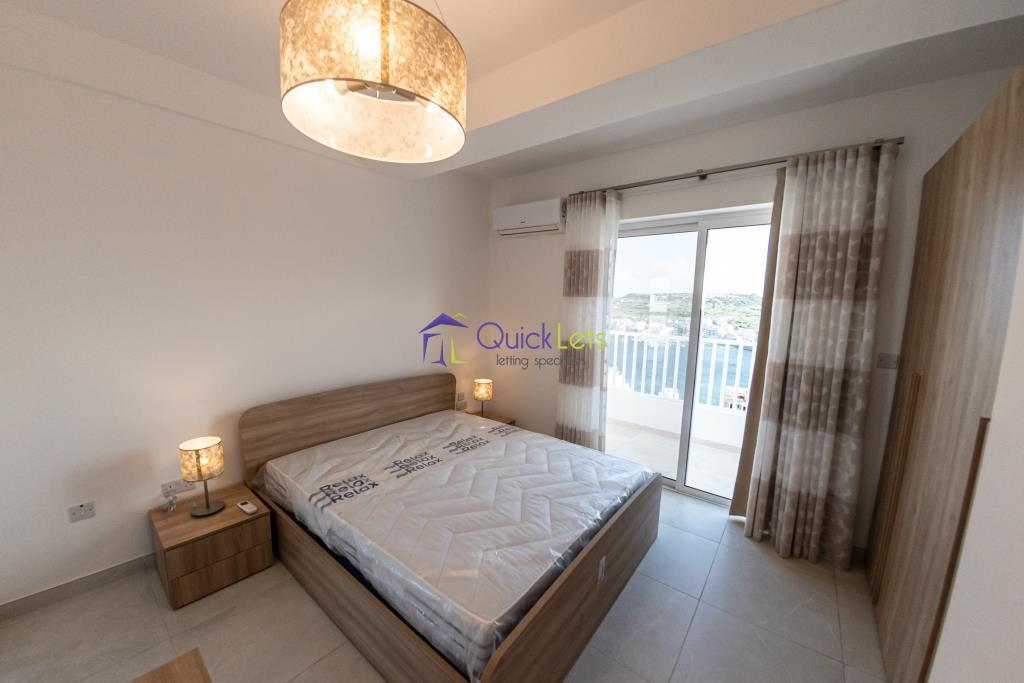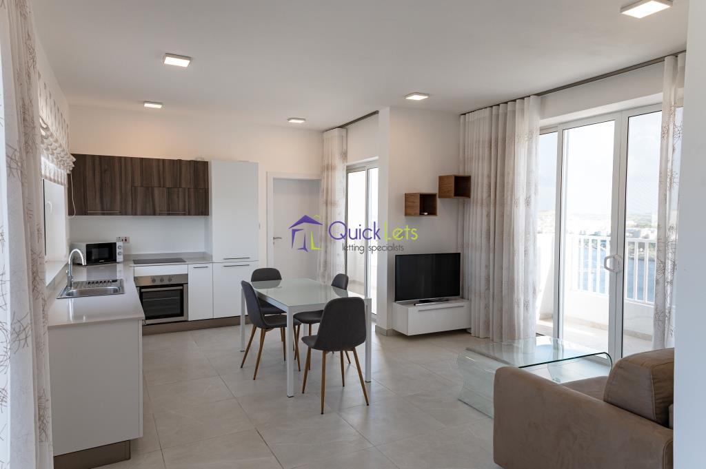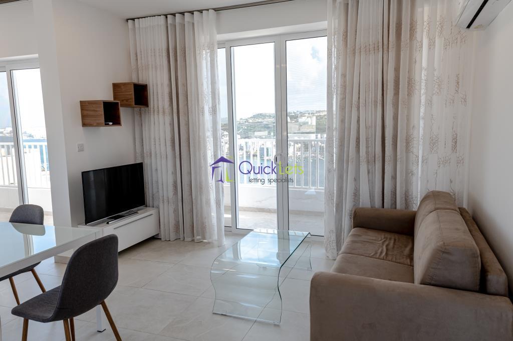 XEMXIJA - Xemxija Heights - In a very quiet area of San Pawl il-Baħar. Very bright newly built one-bedroom penthouse with stunning unobstructed views of Xemxija Bay from three balconies on the backside and country views from the front terrace. All new furniture with all modern amenities including full air-conditioning. The layout of the property consists of an open-plan kitchen/dining/sitting area, bedroom, bathroom, three balconies. The block is served with a lift.