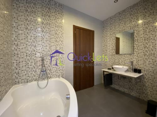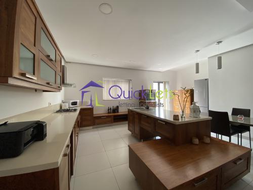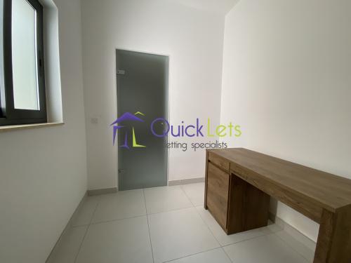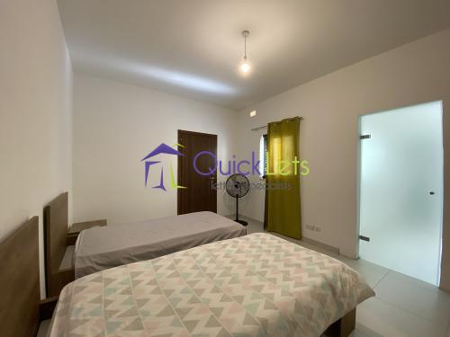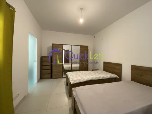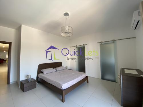 MARSASKALA - A larger than usual modern three-bedroom apartment situated in a quiet part of the village. The apartment is located on the third floor, the block is served with the lift. The layout of the premise consisting of an open plan kitchen/ living/dining area with a front balcony, open plan is bright & spacious and fully equipped, down the corridor, there are the main bathroom with a bathtub, a spare bedroom with a double bed, the second spare bedroom with two single beds, a study room with a desk, and shower en-suite, the main bedroom with shower en-suite, a box-room, and the back balcony. The property equipped with the A/C in the main bedroom, dehumidifier, gas heater, all windows have the insect screens, intercom.