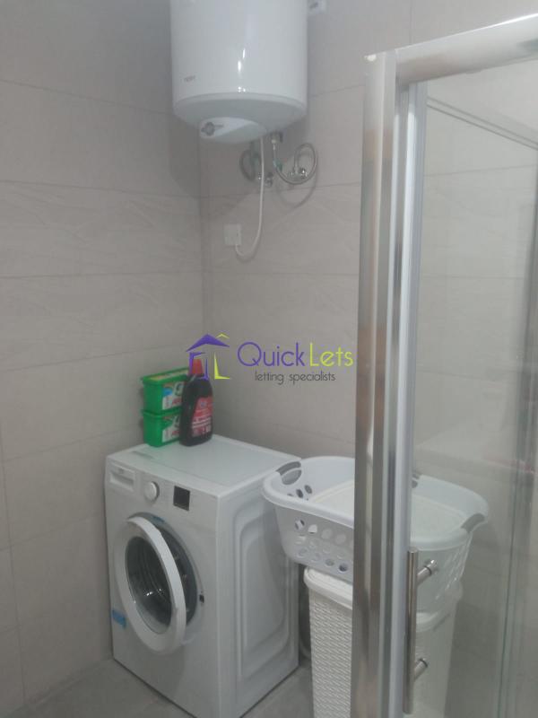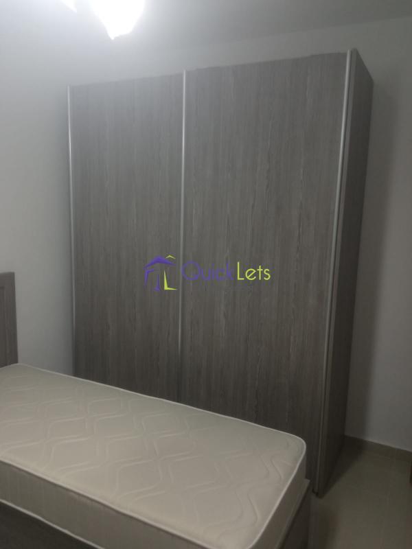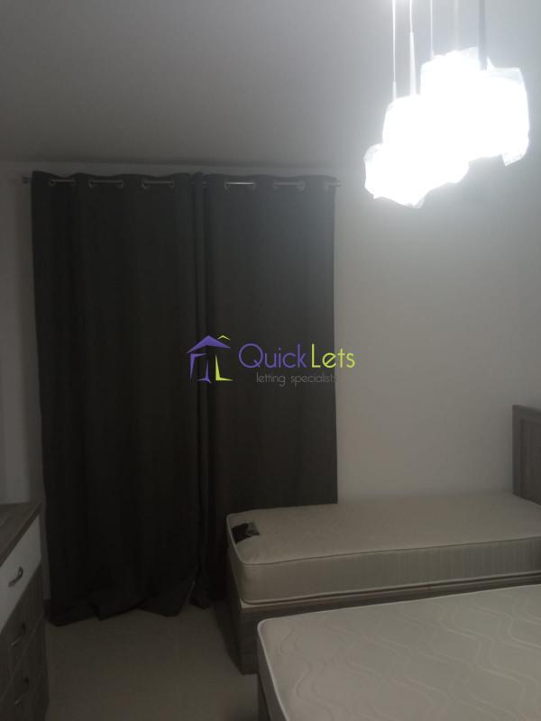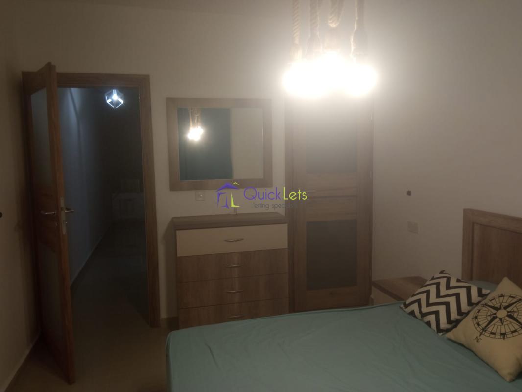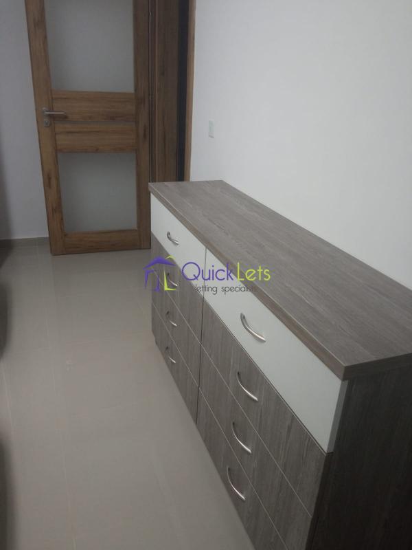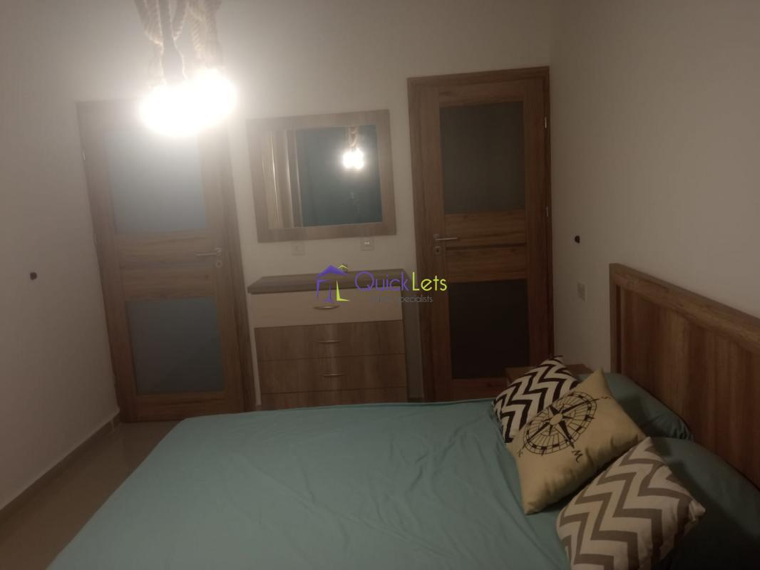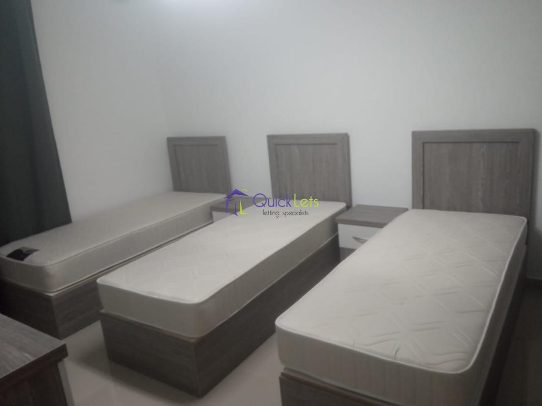 BIRZEBBUGIA - A modern furnished and bright two-bedroom apartment. The apartment is located on the 3-d floor, The block is served by the lift. The layout is in the form of an open plan kitchen, living, dining, and main bedroom with a double bed and the shower en-suite, the spare bedroom has three single beds, and the main bathroom has a shower and a washing machine, a front and back balcony. There are A/Cs in both bedrooms.