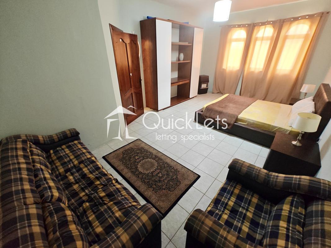 - A large bedroom with doubole bed, and set of sofa and airmcher,