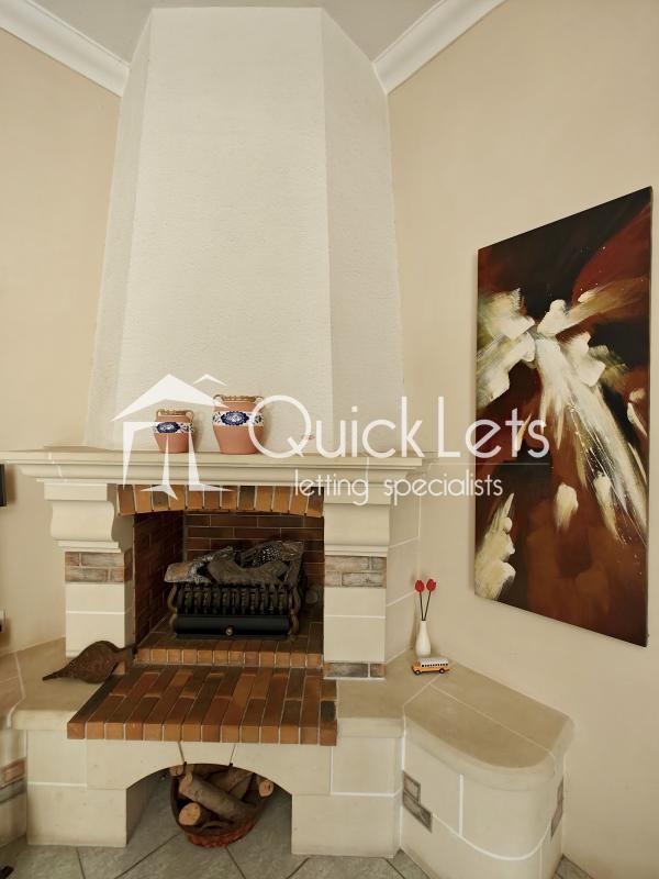 leading to vast open living room with fireplace, kithen/living room with acces to cozy garden.