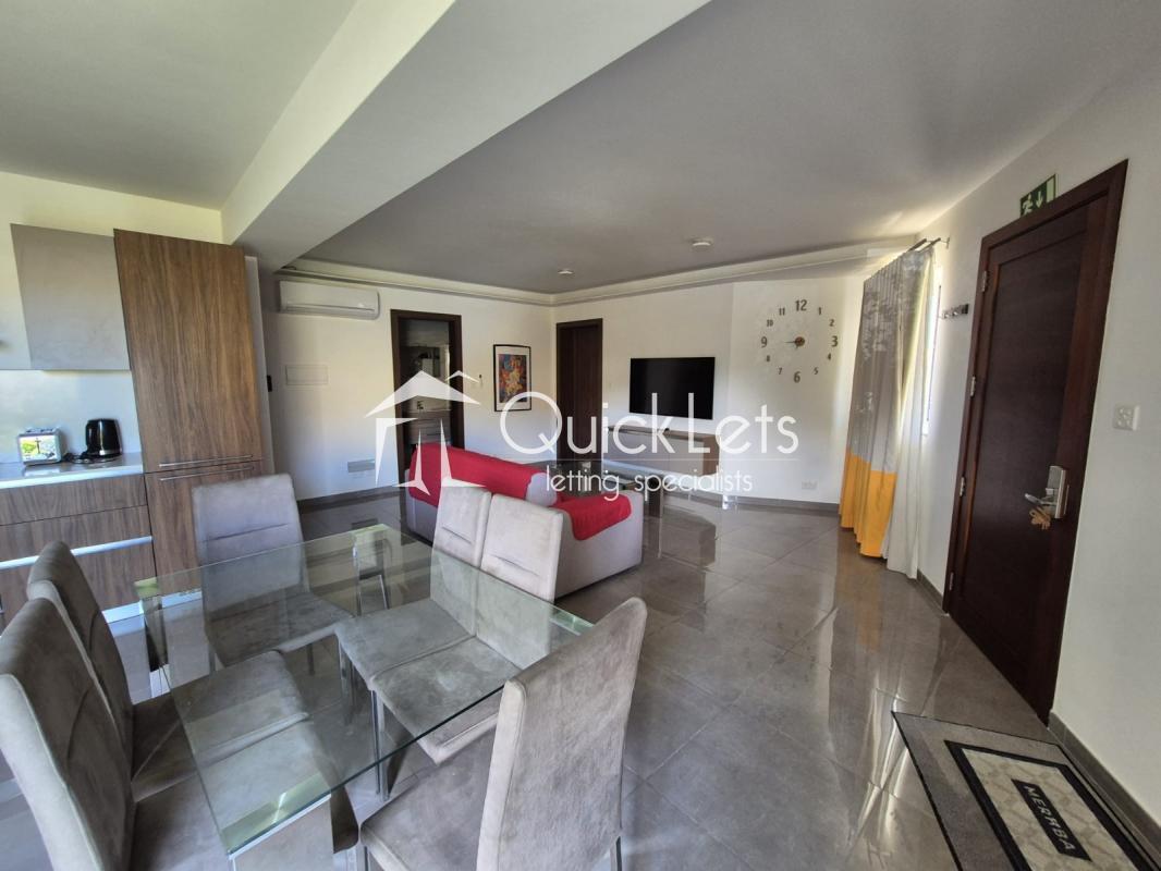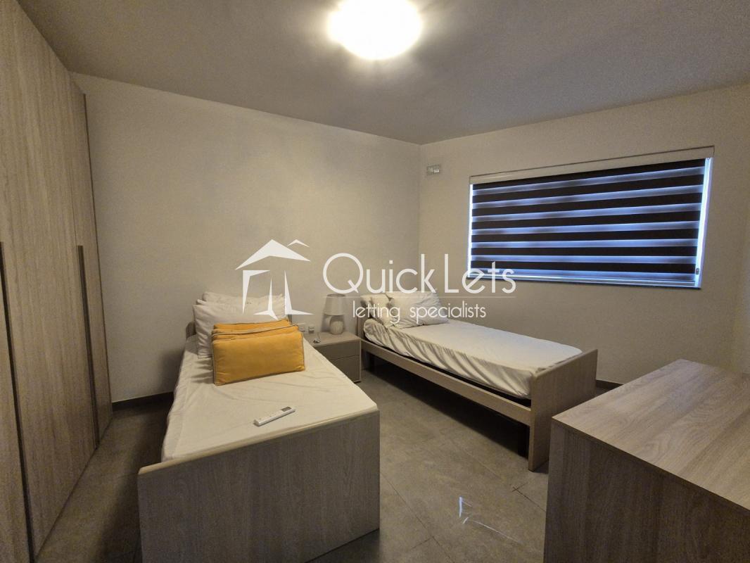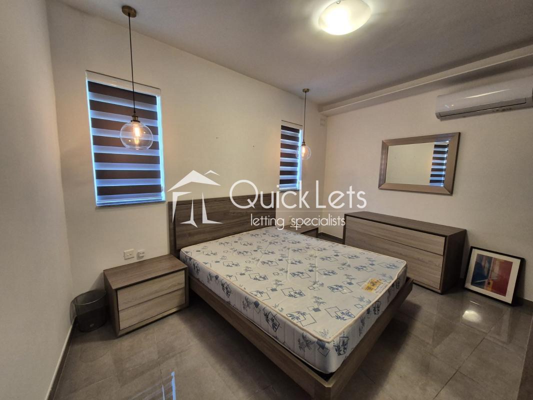 BIRKIRKARA - A ground-floor maisonette situated in a residential area, yet close to all amenities. The property is fully furnished and finished to high standards, comprising a spacious open plan with a living area, a fully equipped kitchen, and a large terrace. It has two bedrooms, the main having an ensuite and then another bathroom as well. It also has use of the roof terrace, which includes a swimming pool and an entertainment area