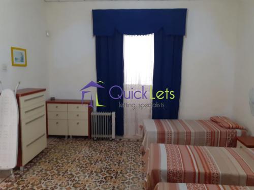 Shared bedroom with three single beds available in a shared four bedroom townhouse. The house is located in central Malta, has a main bathroom with a bathtub and a nice outdoor yard.