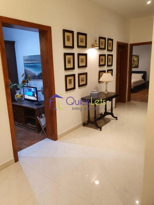 ST JULIANS - A fantastic opportunity to rent a comfortable and spacious apartment in a very much sought after area of St Julians. This is a quiet area, yet only a few minutes walk from Spinola and the seafront restaurants. There is a short flight of comfortable flats to reach this apartment. Upon entering one finds a hallway that leads to an open plan sitting and dining area. Then one finds a spacious fully equipped kitchen with an intimate living area. There are two bedrooms and two bathrooms, one ensuite. There's also a guest toilet and a laundry room. There is a third room that is currently unfurnished and may be used as an office or for storage, however it may also be furnished as a third bedroom upon request.