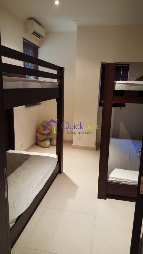 SLIEMA - A fully-refurbished classic style 2nd-floor apartment in the best part of Sliema just off Tigne seafront/point. The property comprises of a large open plan living with 3 sofas/dining/fully-equipped kitchen, and a traditional Maltese balcony boasting side sea/town views. There are four bedrooms, one double bedroom with ensuite, another double bedroom, a third bedroom with 4 bunk beds and a fourth single bedroom/study/office, which are served by a main bathroom. A utility cupboard houses the washing machine/dryer.