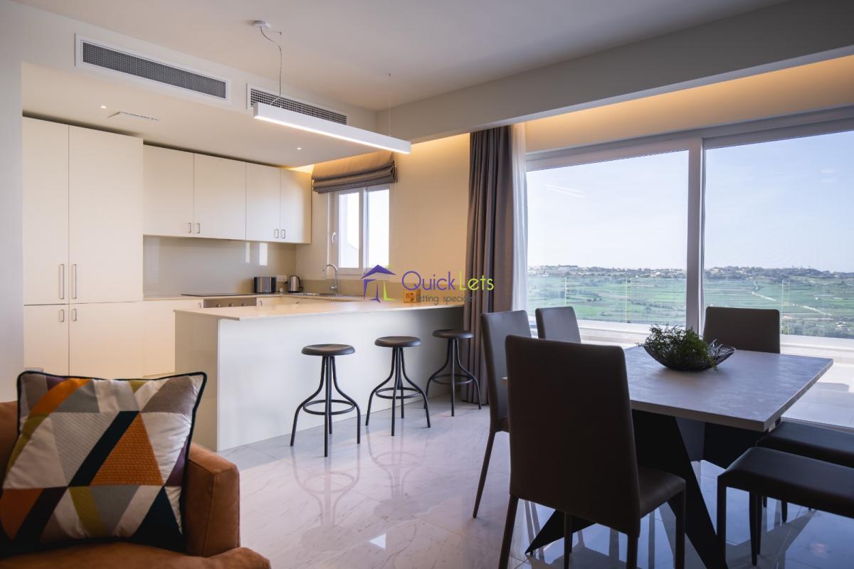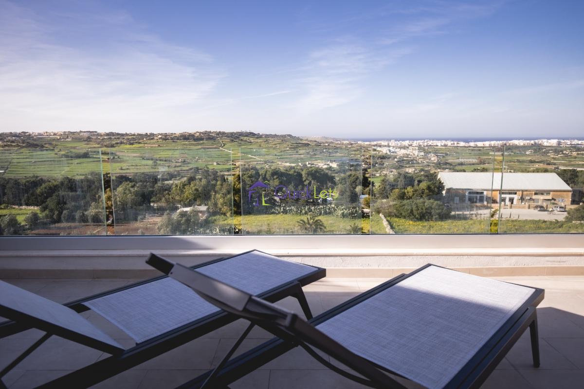 MOSTA | A spectacular well finished and recently finished Penthouse situated in Mosta close to all amenities and Gardens. Boasting fantastic unobstructed country and distant sea views. Comprising a comfortable open plan kitchen-living-dining room, three bedrooms, one main bathroom and an en-suite in the master bedroom along with a walk-in wardrobe. Having a back balcony and a lovely front terrace to enjoy equipped with outdoor furniture a Jacuzzi. 2 car lock-up garage included.