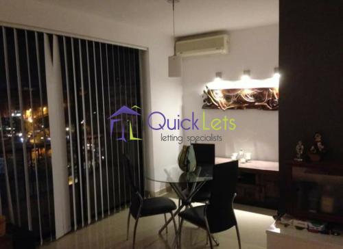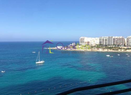 ST. JULIAN'S - This third floor sea front apartment is located perfectly on the front close to buses, entertainment and offices. Features a large open plan living space leading onto the front spacious balcony, and a kitchen and dining area, fully equipped with dishwasher. Furthermore, there are two bedrooms, of which one has an en-suite and both are air-conditioned. There is an additional bathroom with a bath and a utility room.
