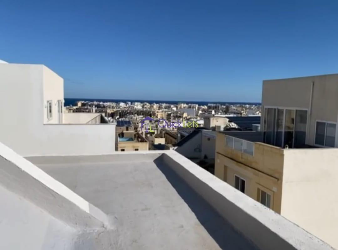 SLIEMA - Here we find a studio penthouse, on the top of a hill in the Balluta area. The studio penthouse is situated on the fifth floor of the corner brand-new block and is served with a lift. Once you enter the apartment first you find a living/sleeping area with a sofa bed. The next one is the kitchen/dining area equipped with all new appliances. At the back is the bathroom with a shower. A compliment to this studio is a large terrace, bigger than the studio itself. And the best feature is solo access to the roof that has an amazing view of Valletta harbor and is overlooking Sliema, Gzira, and Msida. Definitely worth each penny paid )))