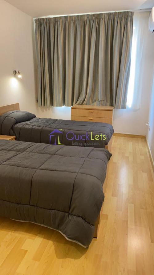 SLIEMA: A newly refurbished two bedroom, spacious and well-lit side sea view Apartment. Comprising of an open plan living, a well-equipped kitchen, leading to a good size balcony to bedrooms consisting of, one double (with Balcony )and one with twin beds. It has one large bathroom. This property is also equipped with double glazing windows and fully equipped with everything one needs to move-in.