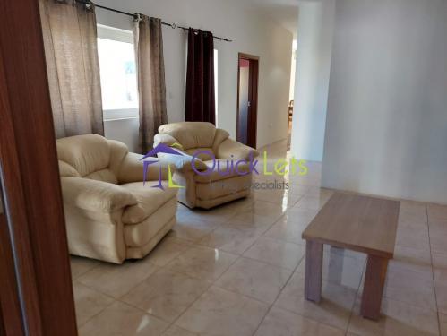 ST PAUL'S BAY - Here we find a fully furnished three-bedroom apartment located on the 3rd floor served with a lift. The layout consists of a large open plan, kitchen-living-dining room, main double bedroom, two spare bedrooms with a single bed each, and main bathroom. The property has plenty of natural light and you can enjoy a big garden from the balcony.