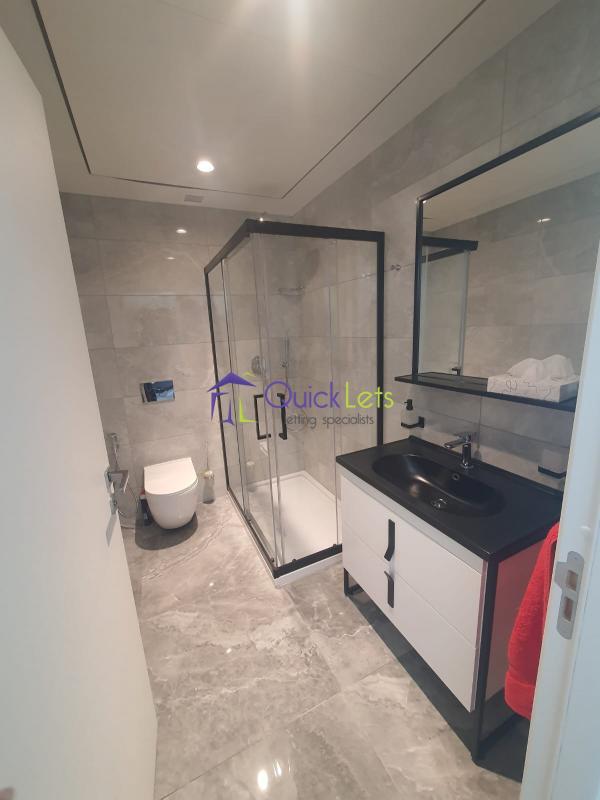 Spacious Bathroom Retreat: Unwind in the spacious bathroom featuring an elegant shower. Immerse yourself in luxury and style, creating a personal sanctuary for relaxation.