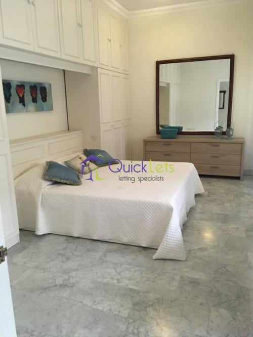 Furthermore before reaching the bedrooms one finds a large desk in the wide hallway. The bedrooms consist of 2 double bedrooms, one with en suite and also leading to a large back terrace and another master bathroom. In addition, there is another room which at the moment has another 2 single beds but can be adjusted to anyone's requirements.