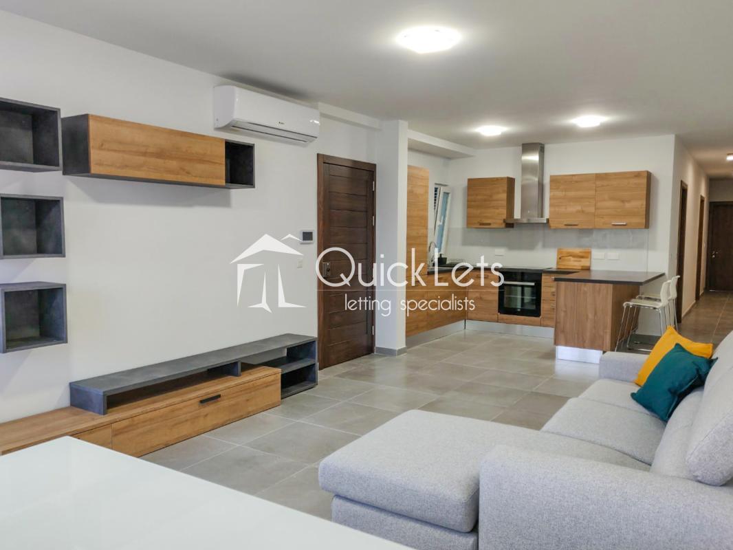 BIRZEBUGGA - New on the market is this fantastic, brand new, three bedroom apartment located in a quiet area in Birzebugga. Settled on the third floor and served with a lift, upon entrance in this apartment we find very spacious open plan kitchen/living/dining area leading to a front balcony enjoying peaceful country views. Down the hall we find three bedrooms, master bedroom served with an en-suite shower, second double, third single bedroom, and a main bathroom with a bath tub. Balcony also in the back. Comes fully furnished, fully equipped with dishwasher, washing machine and tumble dryer.