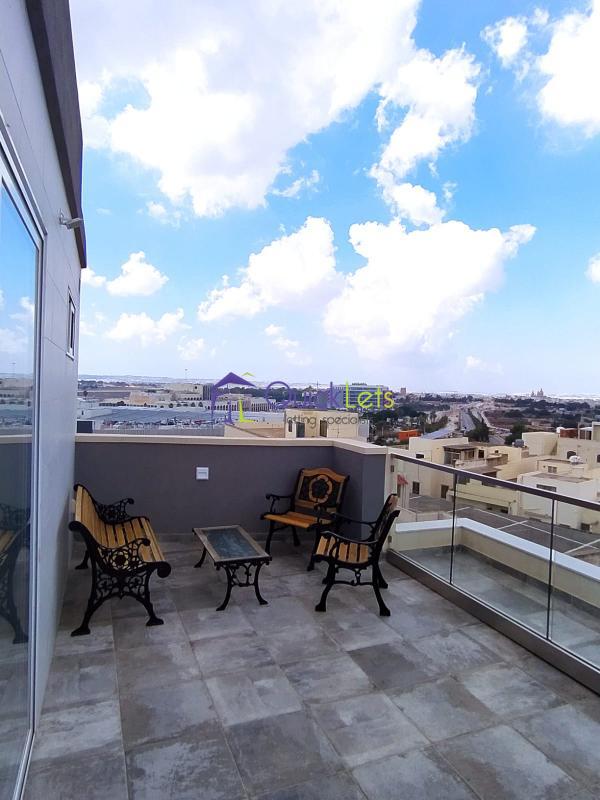 GUDJA - Modern two-bedroom penthouse in Gudja. The property comprises two bedrooms, main bathrooms, an open plan kitchen-living-dining area, and a front spacious terrace. The apartment is fully furnished and airconditioned, with a back washroom.