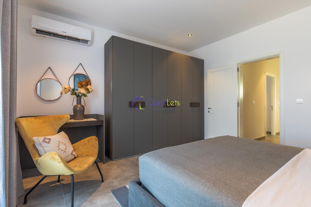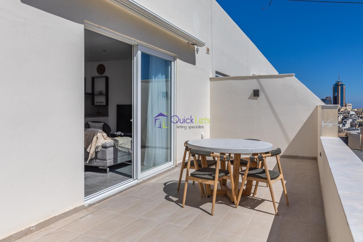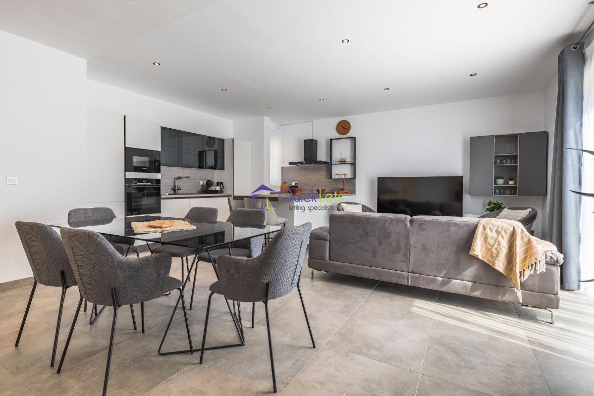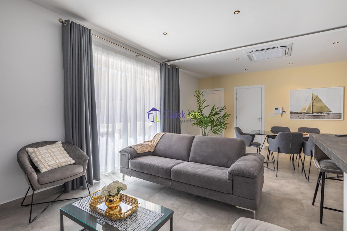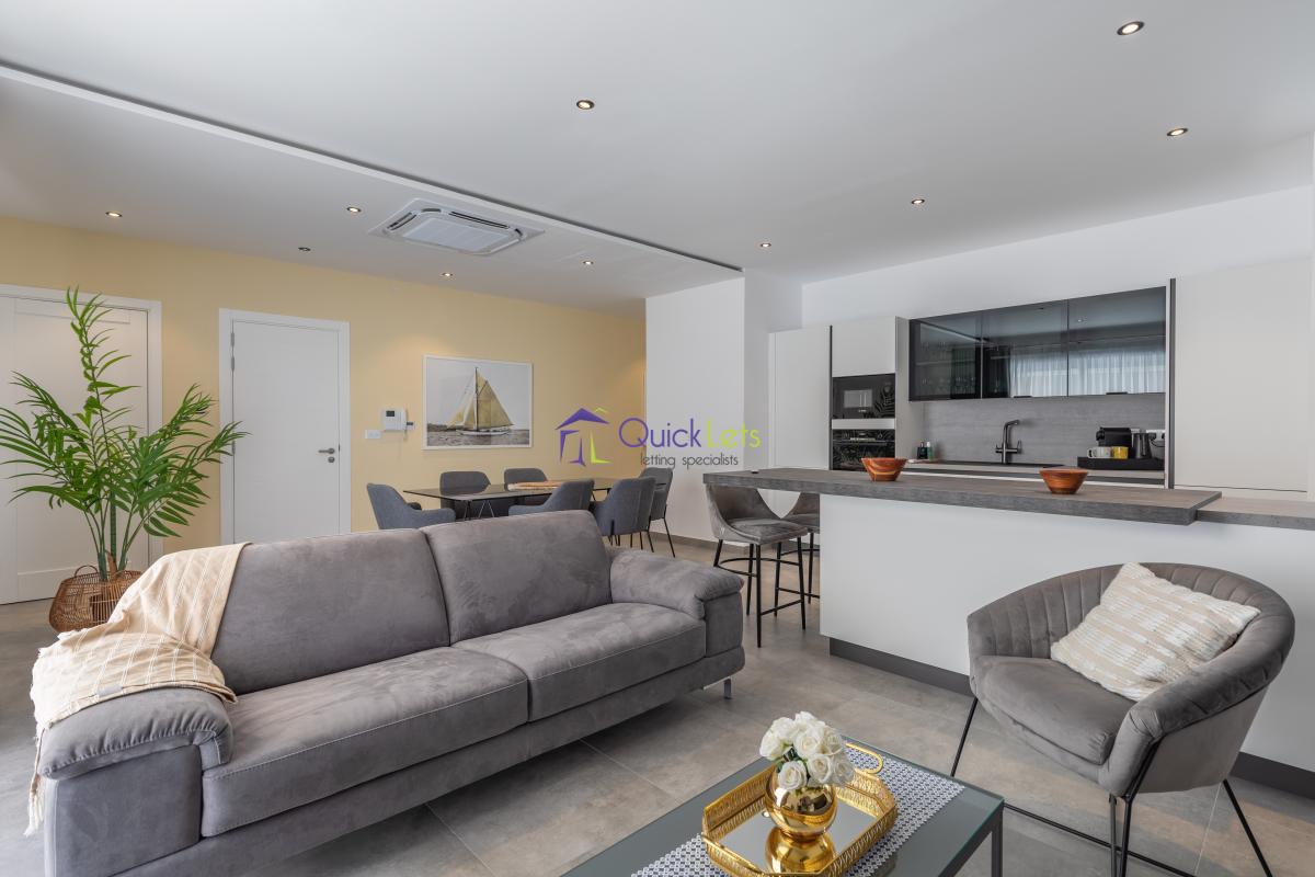 ST. JULIAN'S - Highly finished one-bedroom apartment in St. Julian's. The apartment consists of a double bedroom with a bathroom, a guest bathroom, a kitchen equipped with an oven, dishwasher, fridge/freezer, a living area overlooking Balluta bay, a dining area, and a terrace with views. The apartment is fully furnished and airconditioned, with underfloor heating throughout the whole apartment, with a washing machine and LCD TV.