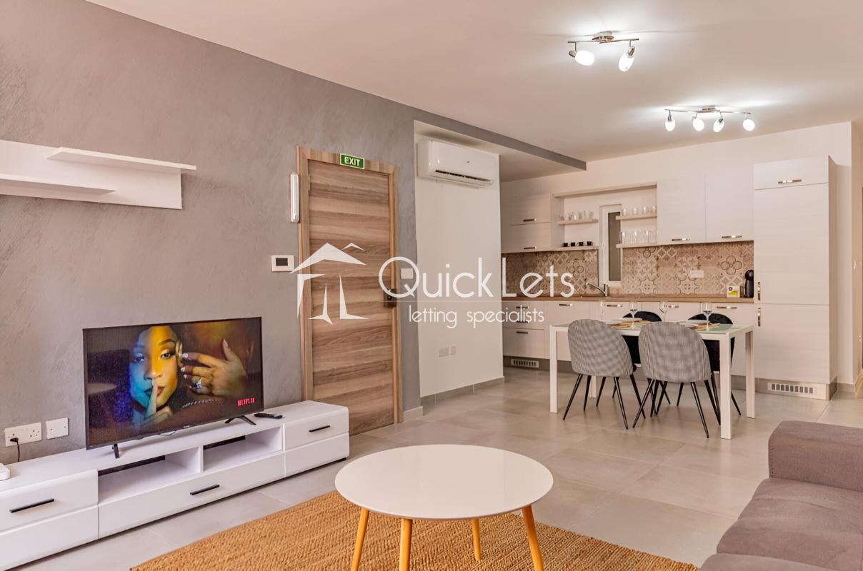 SLIEMA - Discover sophisticated living in this very modern 2-bedroom, 2-bathroom apartment located in the bustling and upscale area of Sliema, renowned for its shopping, dining, and scenic waterfront promenade. This exquisite apartment blends contemporary elegance with functionality, featuring a fully equipped, state-of-the-art kitchen that opens into a spacious living and dining area, perfect for entertaining guests or enjoying quiet family evenings.
