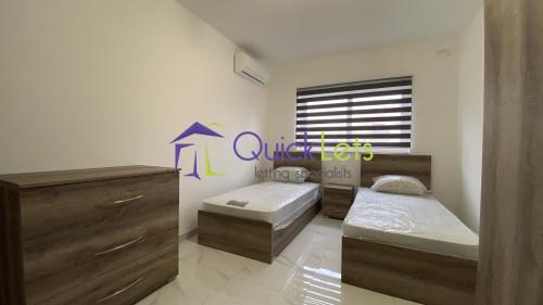 MARSASKSALA - A modern, brand new squarish two-bedroom apartment, the block is served with a lift. The entrance to the block from the street level with no steps. The layout comprises of the bright open plan sitting/dining/kitchen area with the front large balcony, the main bathroom with a bathtub, the main bedroom with a double bed, the back balcony and a shower en-suite, the spare bedroom with two single beds. The apartment is nicely finished, fully air-conditioned, the open plan has a sofa-bed and LCD TV.
