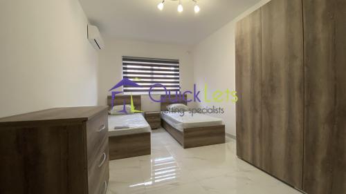 MARSASKSALA - A modern, brand new squarish two-bedroom apartment, the block is served with a lift. The entrance to the block from the street level with no steps. The layout comprises of the bright open plan sitting/dining/kitchen area with the front large balcony, the main bathroom with a bathtub, the main bedroom with a double bed, the back balcony and a shower en-suite, the spare bedroom with two single beds. The apartment is nicely finished, fully air-conditioned, the open plan has a sofa-bed and LCD TV.