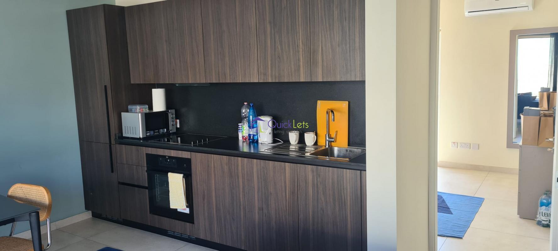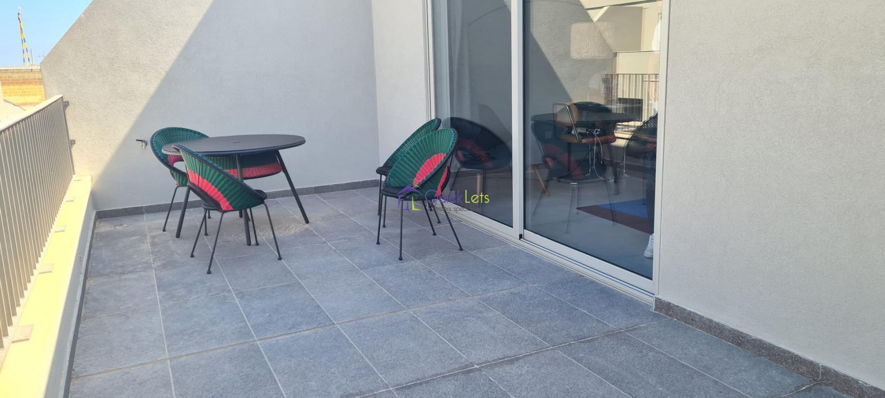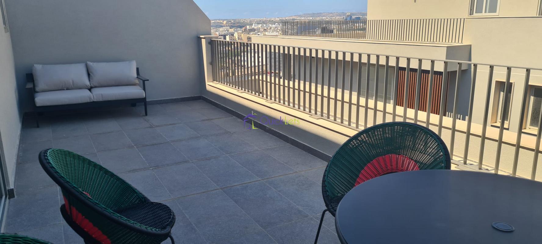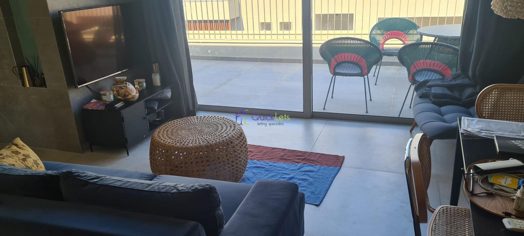 SAN GWANN -The very bright and brand new penthouse consists of an open plan with a kitchen fully equipped, a living room, table, and sofa with LCD TV, the living room leads the big terrace enjoying a beautiful town view and a distant sea view, guest bathroom with the shower and one double bedroom with balcony and AC. The property is highly finished and designed, close to the Church and Lidl of San Gwann and to all amenities daily.