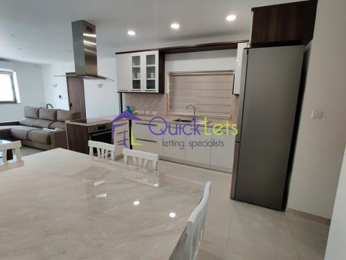 ZURRIEQ - Modern three-bedroom apartment. The property consists of an open plan kitchen, living, dining area, corridor leading to the bedrooms, utility room, and main bathroom with a shower. The living room is leading to a front balcony, perfect for BBQ. The kitchen is coming fully equipped, induction cooker, pots, pans, plates, etc. The main bedroom is with a double bed, a balcony overlooking beautiful land full of flowers. One of the spare bedrooms comes with two single beds, and one with one single bed. All of the bedrooms have a makeup station/study area. All windows and doors are netted.