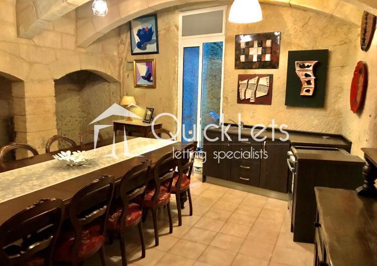 The townhouse features multiple bedrooms, well-sized living areas, and bathrooms designed for comfort. It retains authentic Maltese features such as patterned tiles, high ceilings, and wooden beams, adding a touch of charm and heritage. The kitchen is fully equipped, making it ideal for home cooking and entertaining.