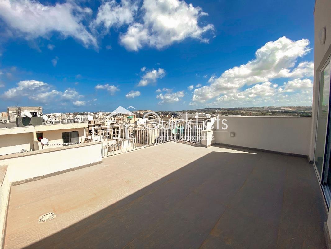 ST. PAUL'S BAY - A spacious seventh-floor Penthouse, enjoying open views and distant sea views. The property consists of a large and welcoming kitchen/dining/living area leading onto a large terrace with outside furniture perfect for entertaining, three double bedrooms, main enjoying an en-suite bathroom with a shower, guest bathroom with a bathtub, laundry room with washing machine and tumble dryer, and spacious back terrace enjoying open views. The property is offered fully furnished with quality furniture and appliances, fully air-conditioned, and ready to move into. Completing this great family home is an optional two-car garage that is interconnected with the Penthouse.