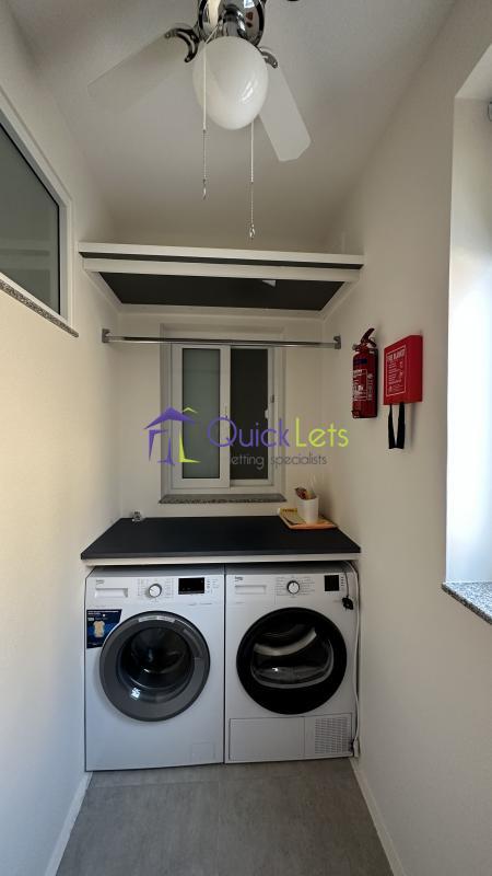 The apartment is finished to very high standards. The well-equipped kitchen boasts high-end appliances (fridge/freezer, induction hob, extractor, oven, microwave, dishwasher) and ample counter space. There is a utility room with a washing machine and a tumble dryer. All windows have an insect screen, and the blinds, and the bedroom's windows also have blackout curtains. The apartment is fully air-conditioned and it has a large Smart TV, intercom, water boiler, air heaters in both bathrooms, and outdoor plants with an irrigation system.